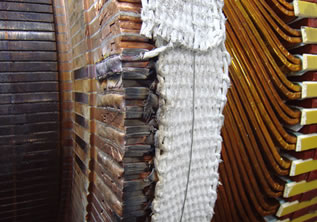 3.1機(jī)械緊固鋼絲箍,用非磁性鋼絲,拉力100kg,每60度設(shè)一固定片,鋼絲箍下墊一層云母(柔軟)板和一層有機(jī)硅層床板,箍完焊接固定。