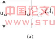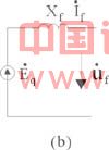 圖2(a)是同步發(fā)電機(jī)的原理圖,圖中FLQ是勵(lì)磁繞組,機(jī)端電壓為Uf,電流為If。在正常情況下,流經(jīng)FLQ的勵(lì)磁通量電流為Ifd,由它所建立的磁場(chǎng)使定子產(chǎn)生的空載感應(yīng)電勢(shì)為Eq,改變Ifd的大小,Eq值就相應(yīng)地改變。通過(guò)圖2(b)的等值電路圖,可以得出: